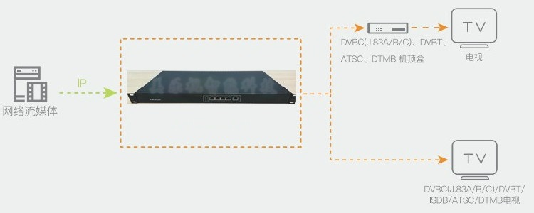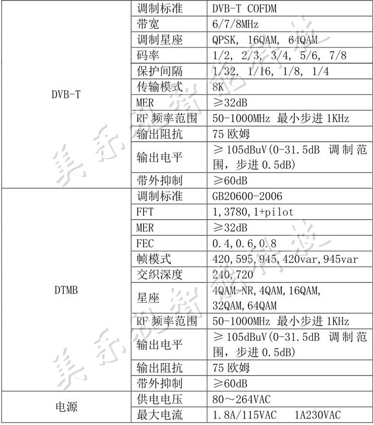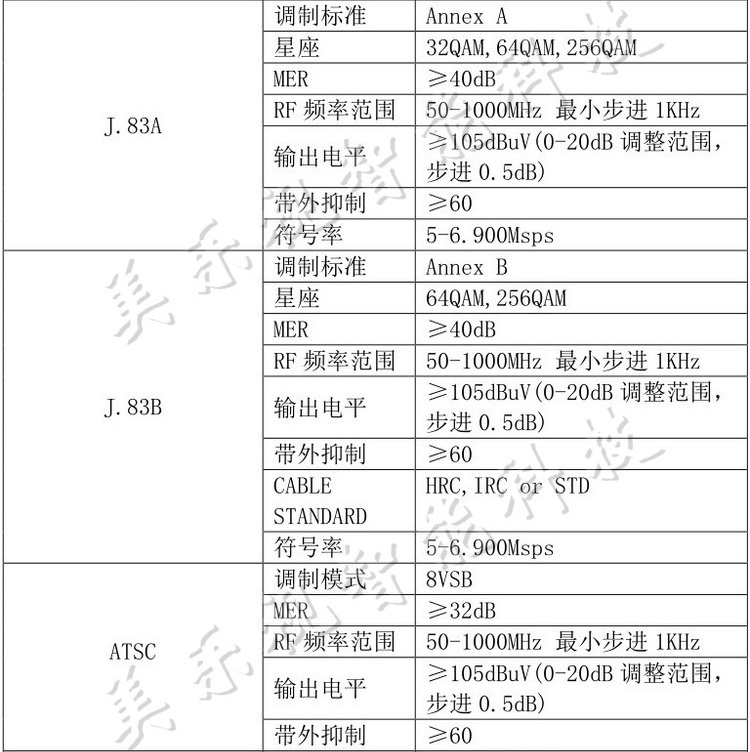 > RF輸出支持多標準調(diào)制模式,支持DVBC(J.83A/B/C)、DVBT、DTMB、ATSC。
