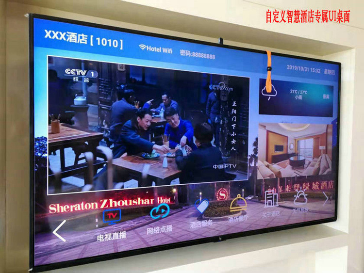 2019年10月31日本公司承接廣州奇幻叢林大象公館智慧酒店IPTV系統(tǒng)工程方案設(shè)計(jì),施工安裝一條龍服務(wù),酒店有68套奇幻主題客房,甲方在電信審請了2臺電信IPTV光貓做為30套電視節(jié)目的信號源,網(wǎng)線傳輸?shù)剿械姆块g,美樂視公司提供智慧酒店系統(tǒng)IPTV服務(wù)器1臺即,指派工程師上門安裝一個工作日即可完成安裝,交付酒店驗(yàn)收試業(yè)。