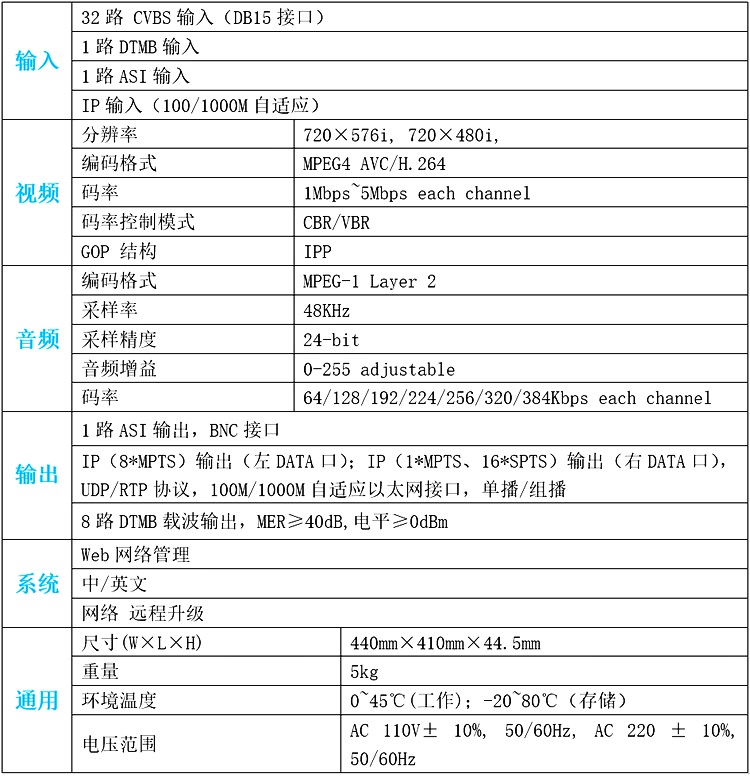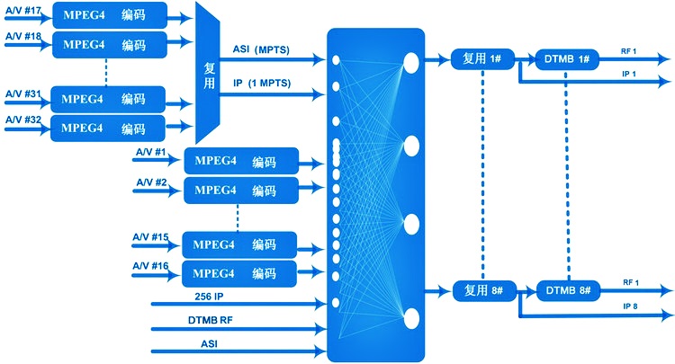 ? 支持32路CVBS視頻輸入、1路DTMB輸入、1路ASI輸入,支持IP輸入,最大支持256個IP地址