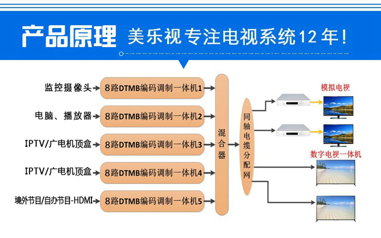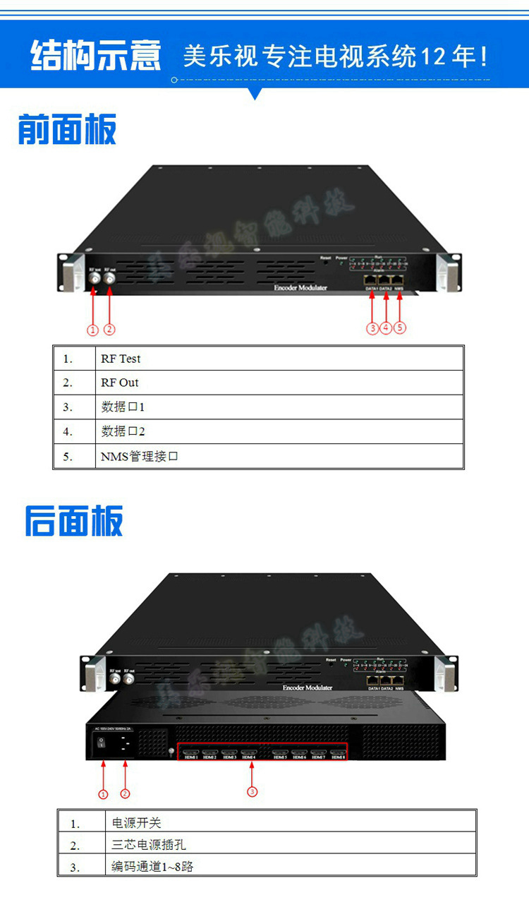 產(chǎn)品推薦說明:系列高清編碼調(diào)制一體機是最新研發(fā)的集高清編碼和調(diào)制于一體的高性價比設(shè)備。該設(shè)備支持8路/12路/24路HDMI 輸入、支持4~8個DTMB載波輸出,該設(shè)備具有高集成度、高性能、低成本的特點,單臺設(shè)備集成了一套酒店高清數(shù)字電視前端系統(tǒng)功能,非常適用于酒店、會所、醫(yī)院、浴場等營業(yè)性場所高清數(shù)字電視前端機房建設(shè)安裝.