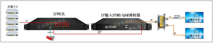 2,基于有線同軸傳方案(1臺(tái)IPTV網(wǎng)關(guān)+1臺(tái)IP調(diào)制器)