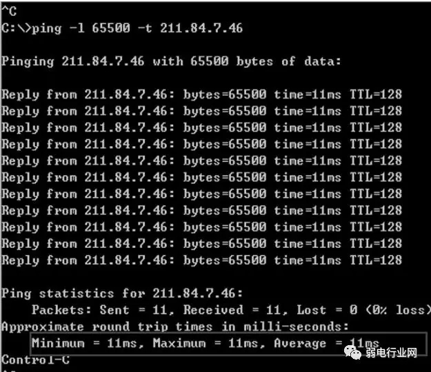 在默認的情況下Windows的ping發(fā)送的數(shù)據(jù)包大小為32byt,最大能發(fā)送65500byt。當一次發(fā)送的數(shù)據(jù)包大于或等于65500byt時,將可能導致接收方計算機宕機。所以微軟限制了這一數(shù)值;這個參數(shù)配合其它參數(shù)以后危害非常強大,比如攻擊者可以結(jié)合-t參數(shù)實施DOS攻擊。(所以它具有危險性,不要輕易向別人計算機使用)。