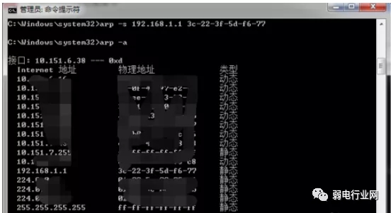 如下圖,先用ARP -s 192.168.1.1 3c-22-3f-5d-f6-77綁定一條記錄,然后用arp -a查詢了ARP記錄添加是否成功。