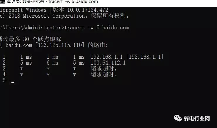 例4、“tracert -h 3 baidu.com”代表本次tracert搜索的最大跳數(shù),輸入3表示搜索在路由器跳轉(zhuǎn)3次,如下圖所示: