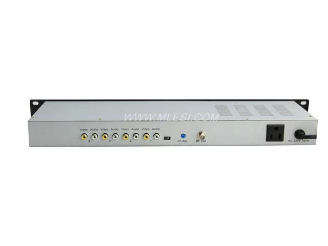 1、四路視音頻通道輸入,一路射頻四個(gè)頻道的隔頻輸出。