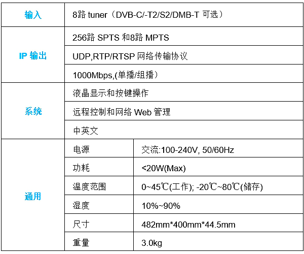 ? IP輸出(256路SPTS和8路MPTS),支持UDP和RTP/RTSP傳輸協(xié)議